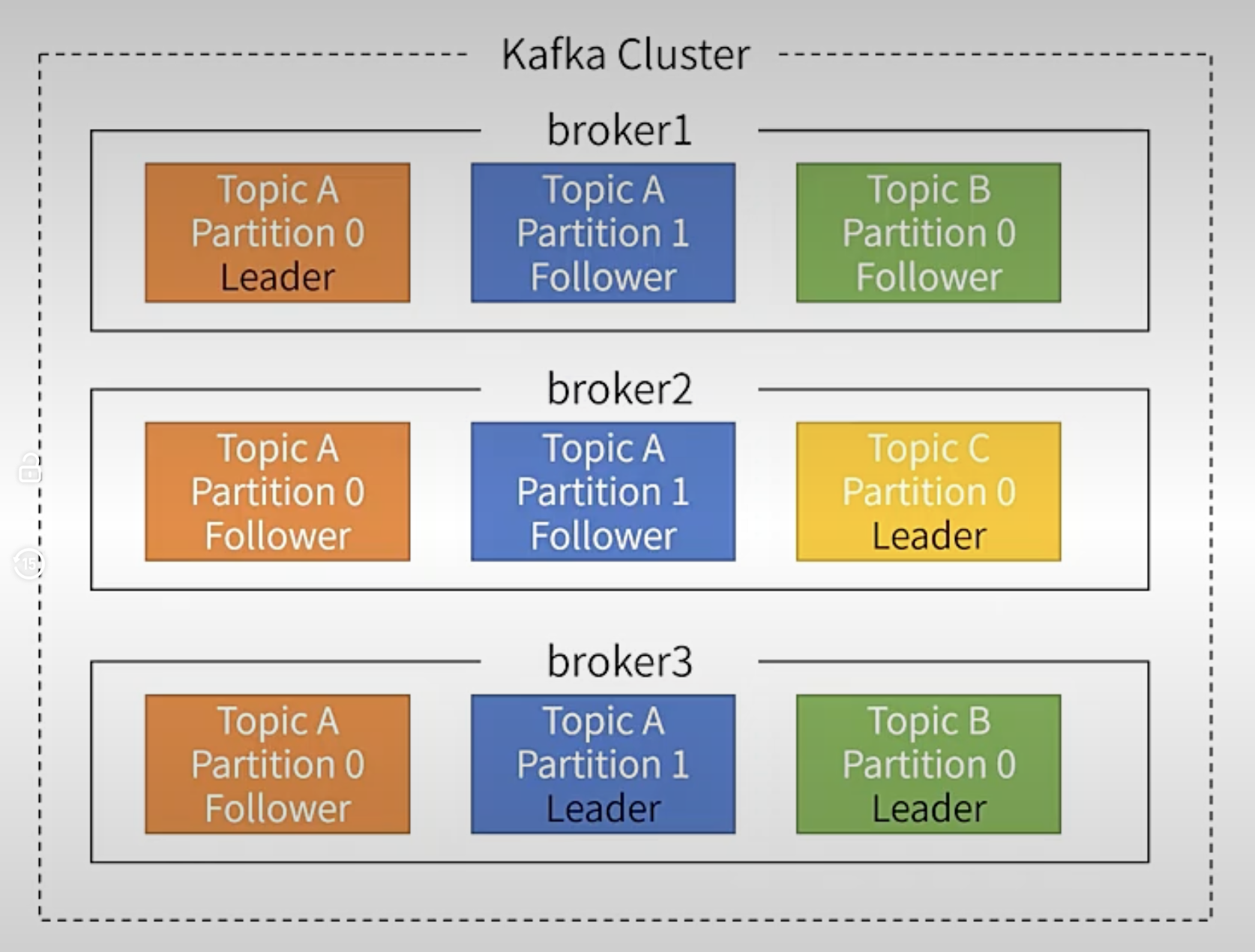 - 副本是分区层级的,每个分区可配置多个副本以实现高可用。