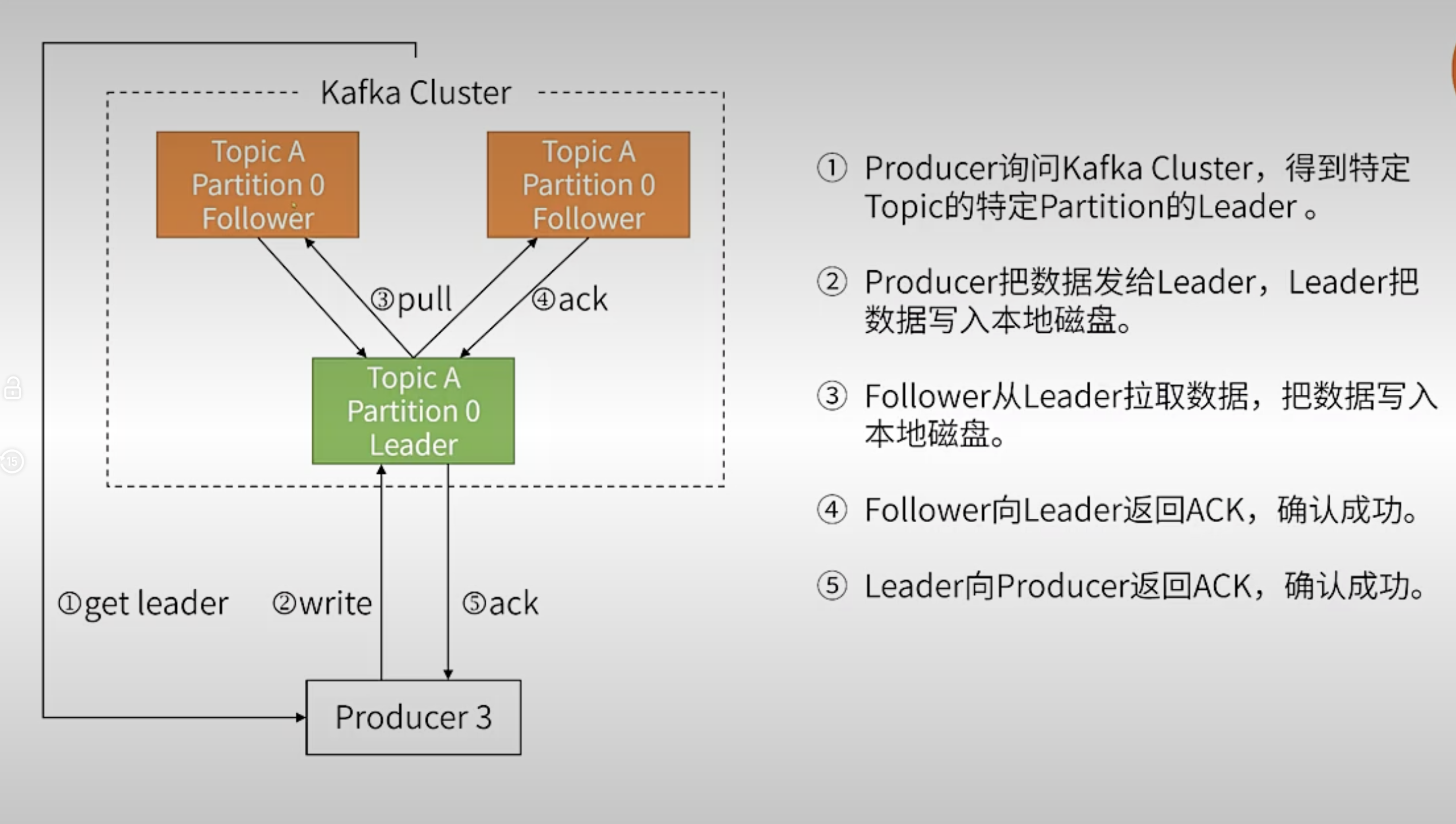 - 分为领导者副本(Leader)和追随者副本(Follower)。